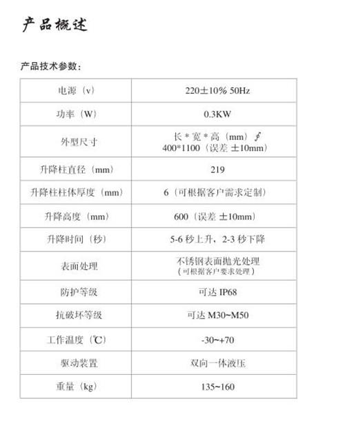 路障升降柱特點(diǎn):